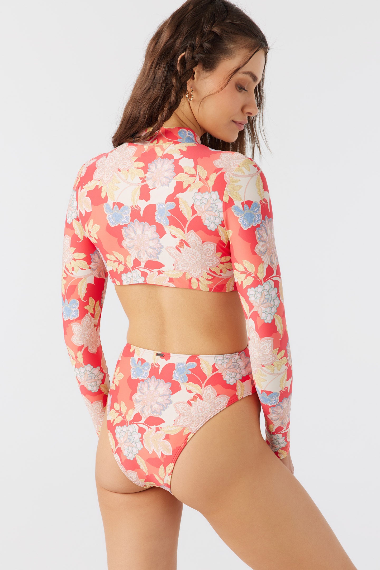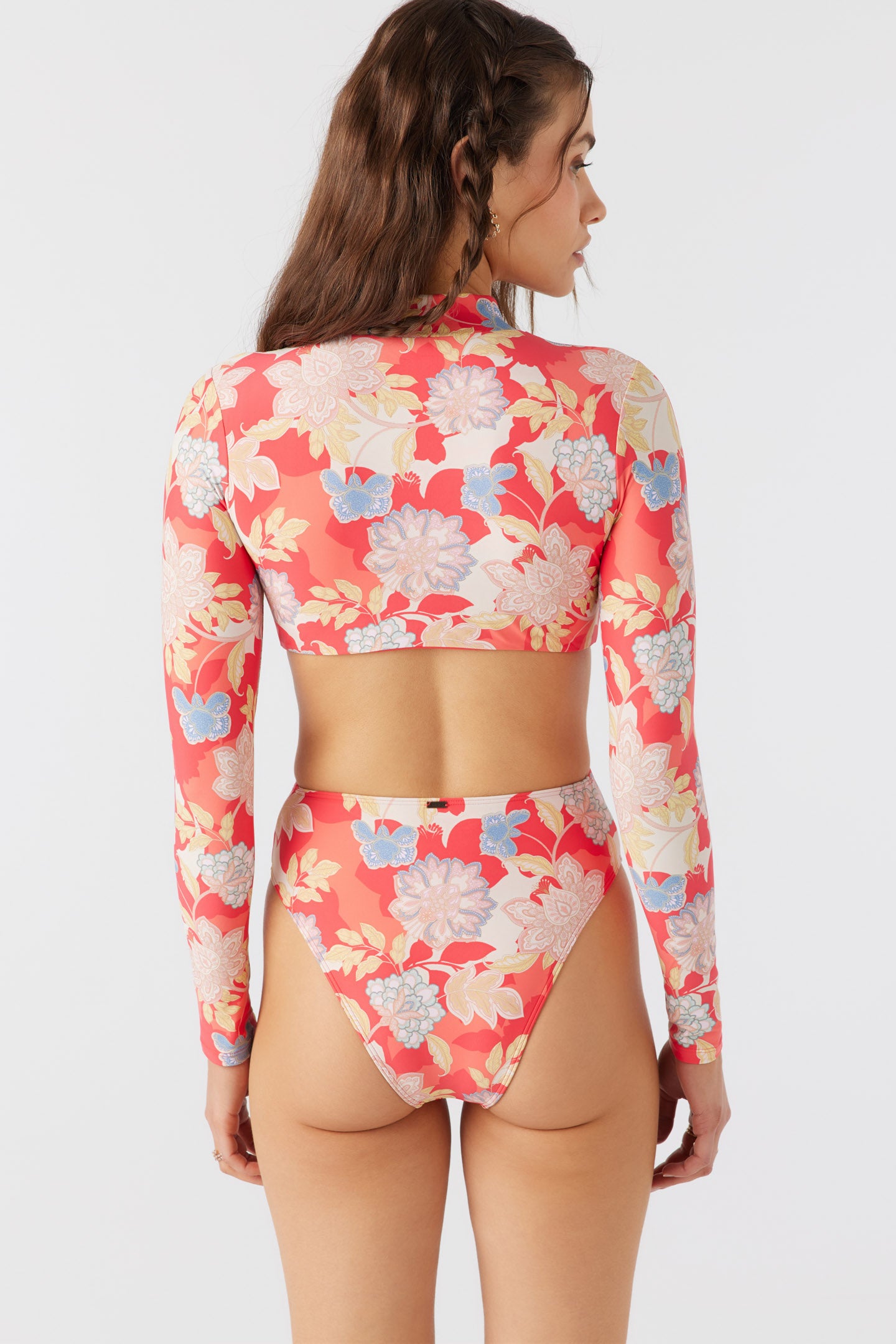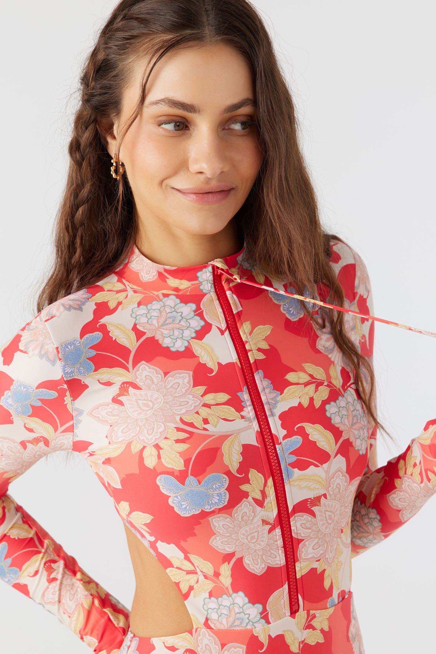 Paddle out or take a swim in this colorful surf suit one piece. It features a back zip closure, side cutout detail and cheeky coverage fit.