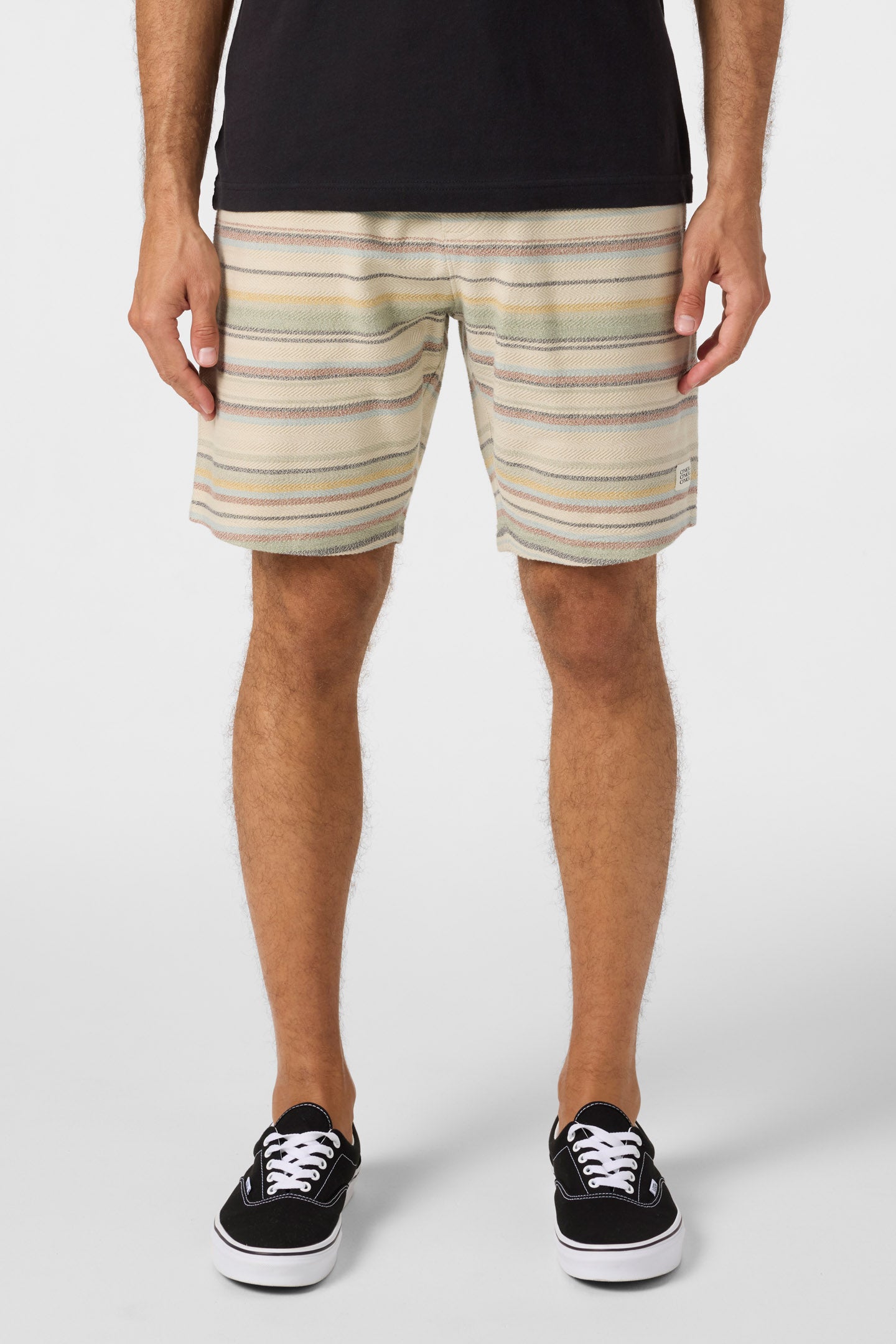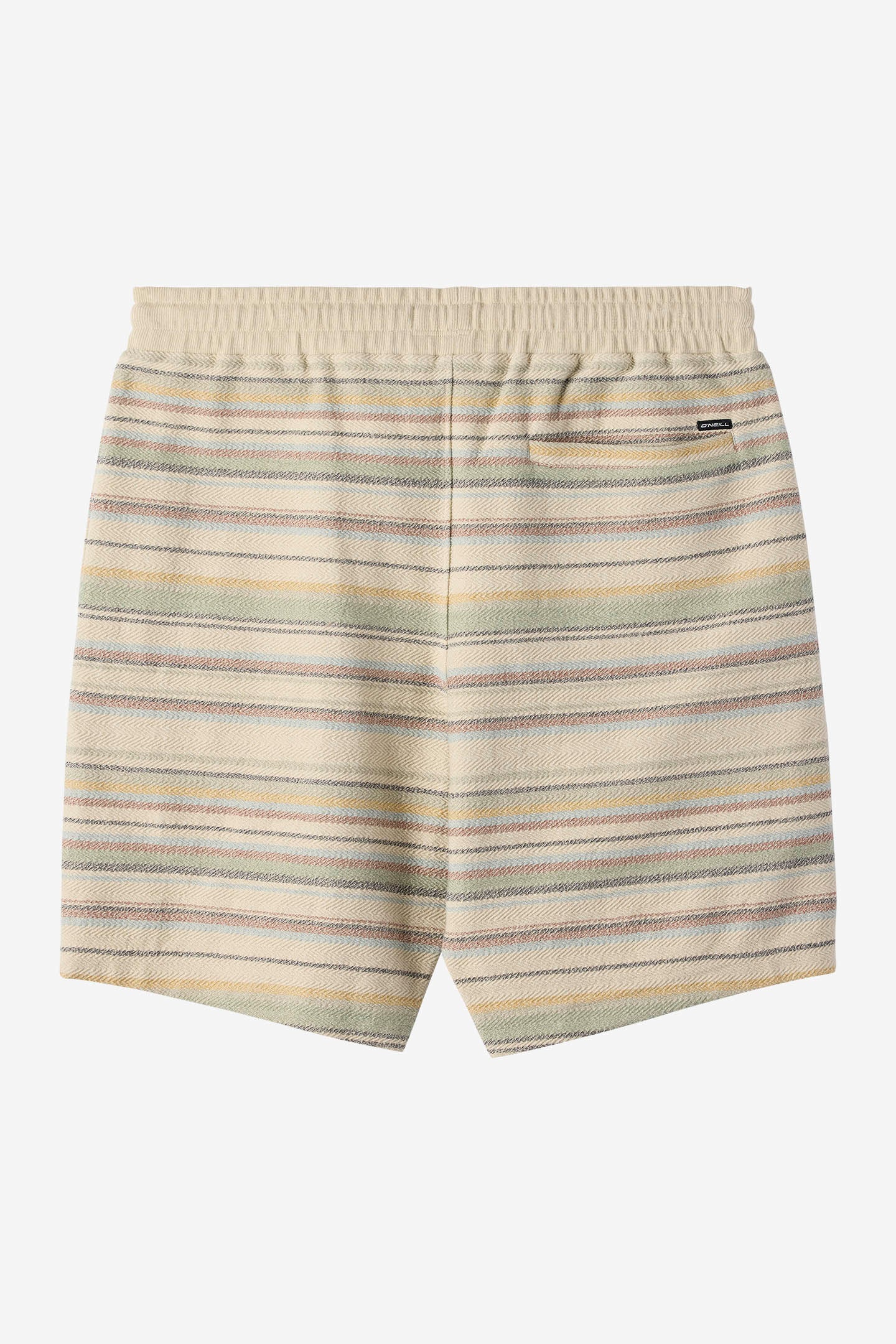 Comfortable short for running errands or relaxing after a surf. It features a yarn dye stripe design, elastic waist with drawcord and single back pocket.