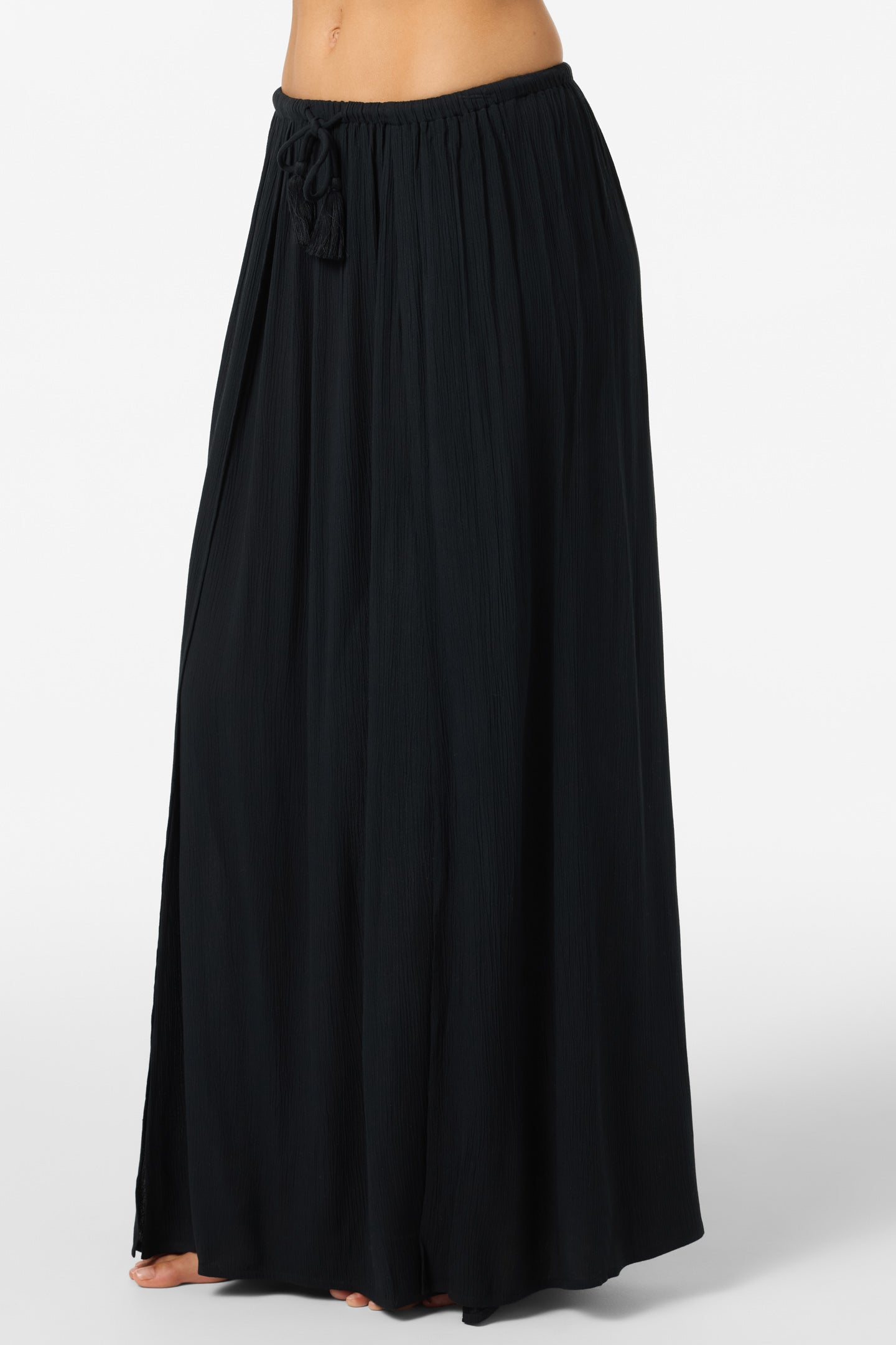 A breezy cover-up skirt to pair with your bikini or favorite top. It features a tassle drawcord and slits at the thigh.