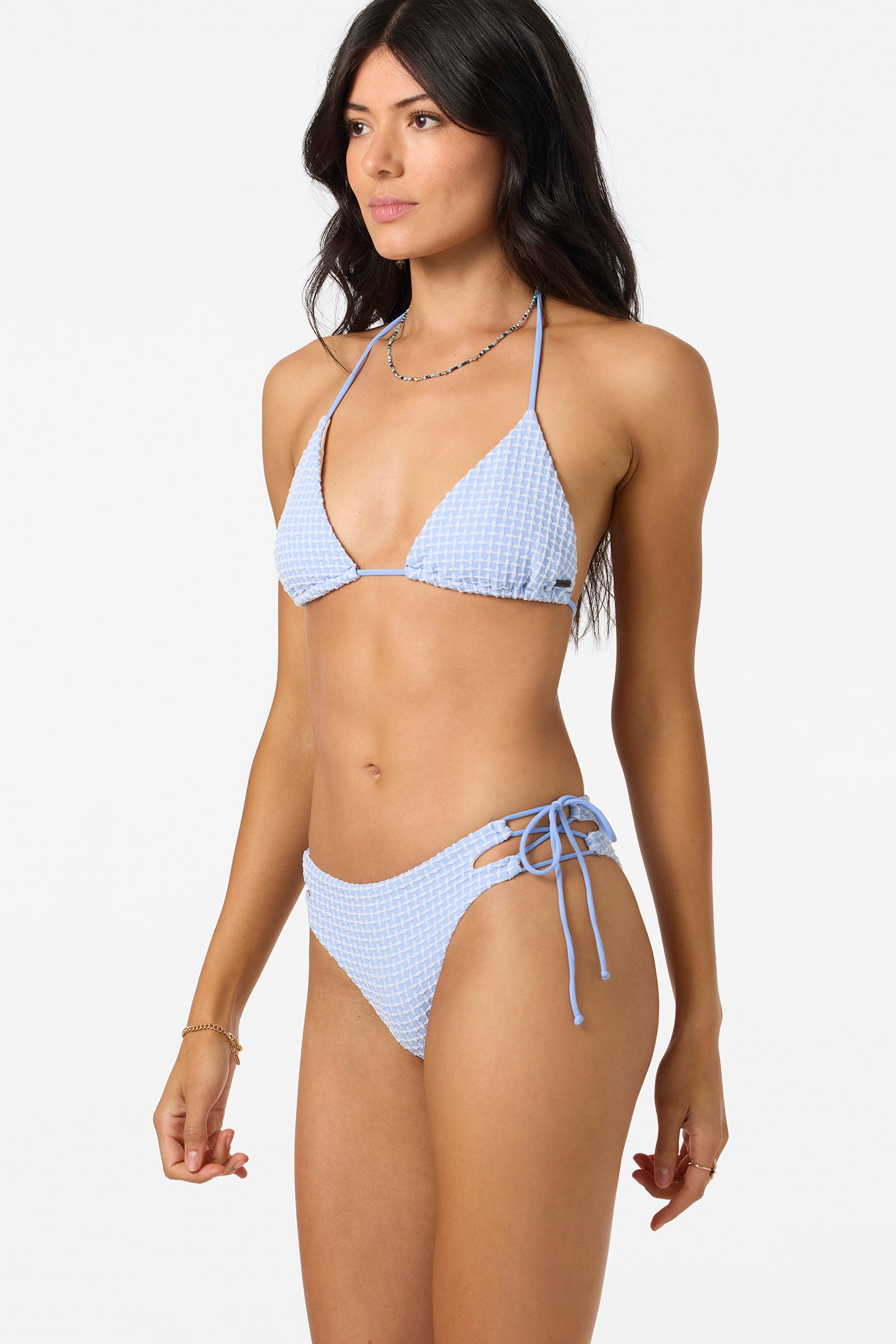 Head to the beach in this sweet and stylish bikini bottom. It has a strappy side tie design and skimpy coverage fit.