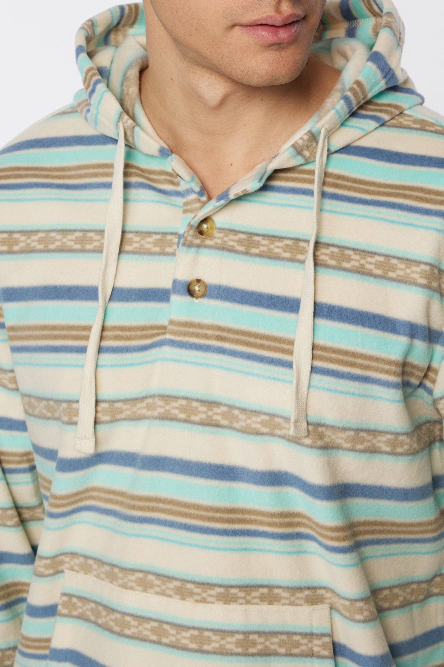A classic poncho hoodie with modern Superfleece fabrication. It has a button closure below the neckline and relaxed fit in the body and sleeves.