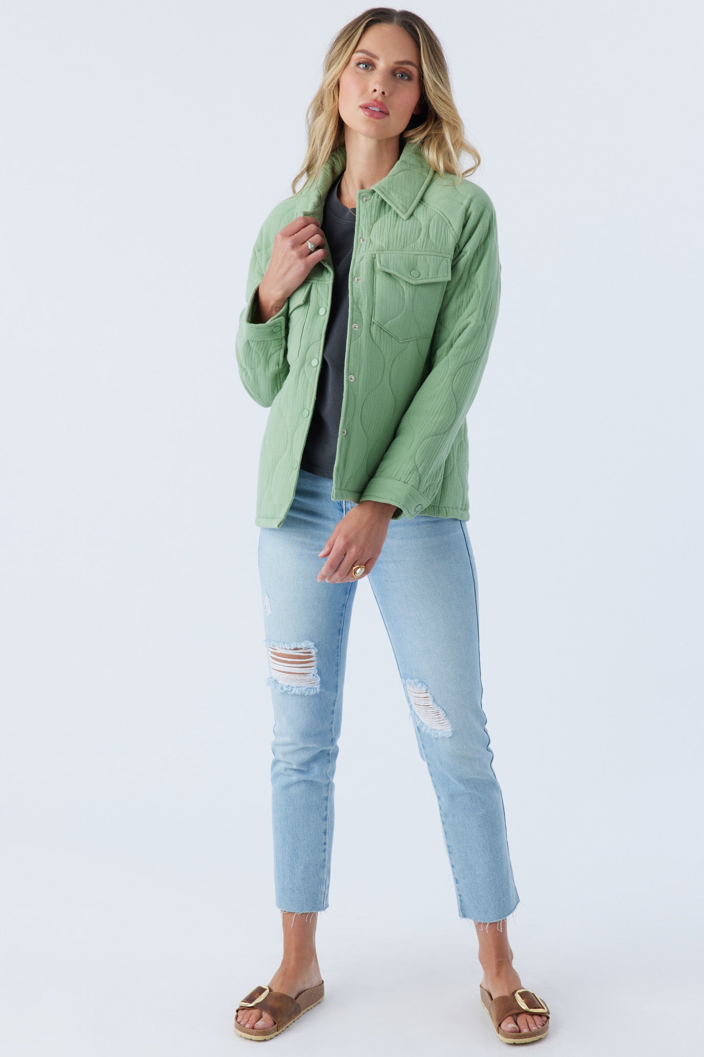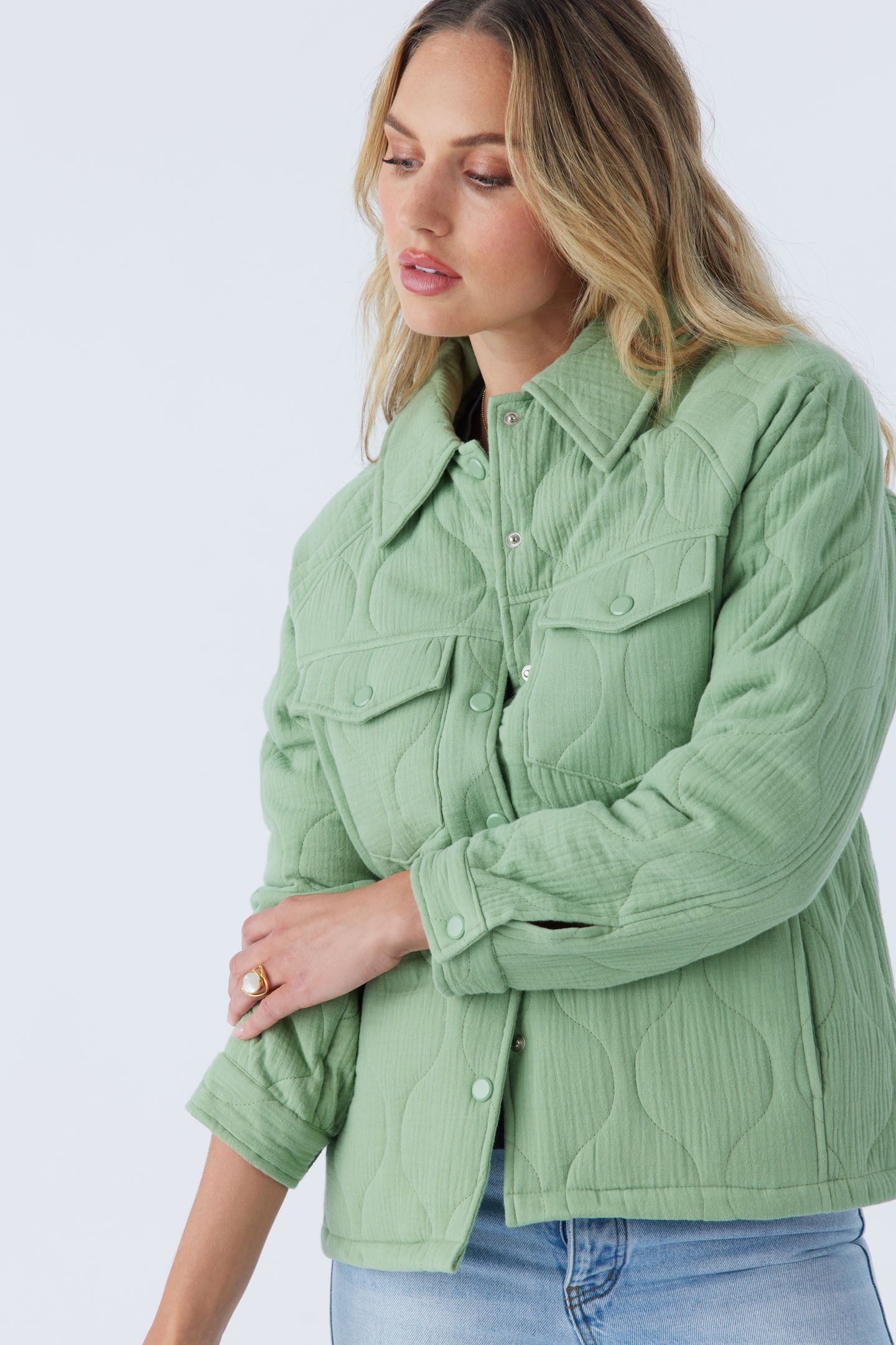 For cooler days in the city or on the coast, our Emit jacket is ready for the occasion. It has a comfortable oversized fit, snap closure and cuffs along with a solid color design.