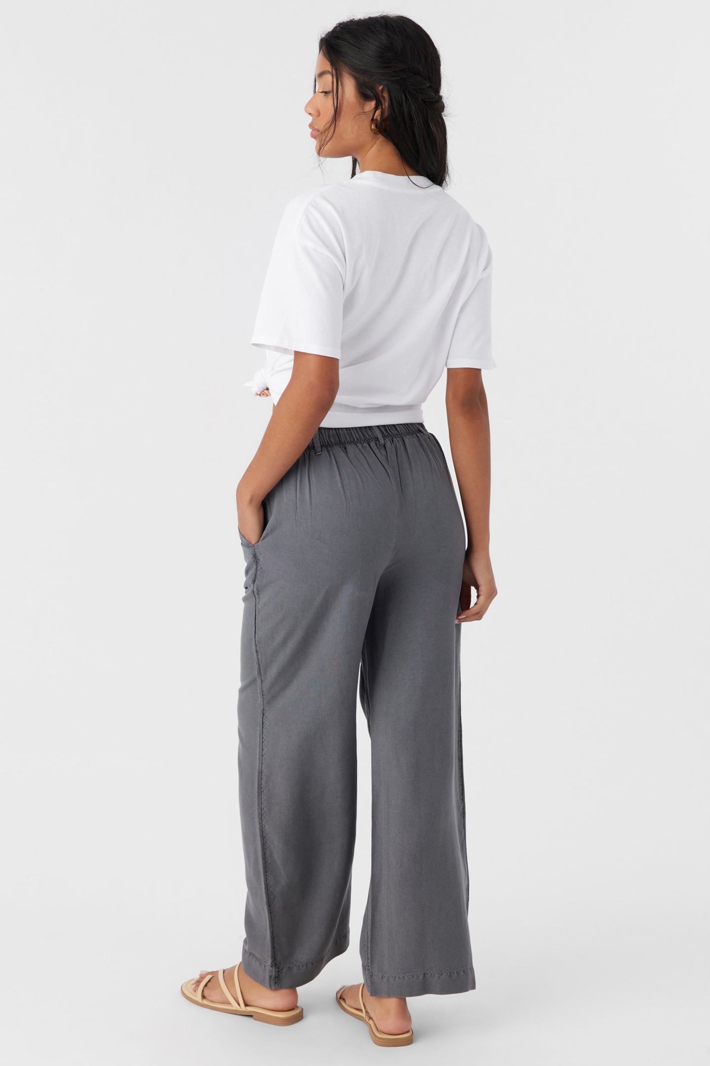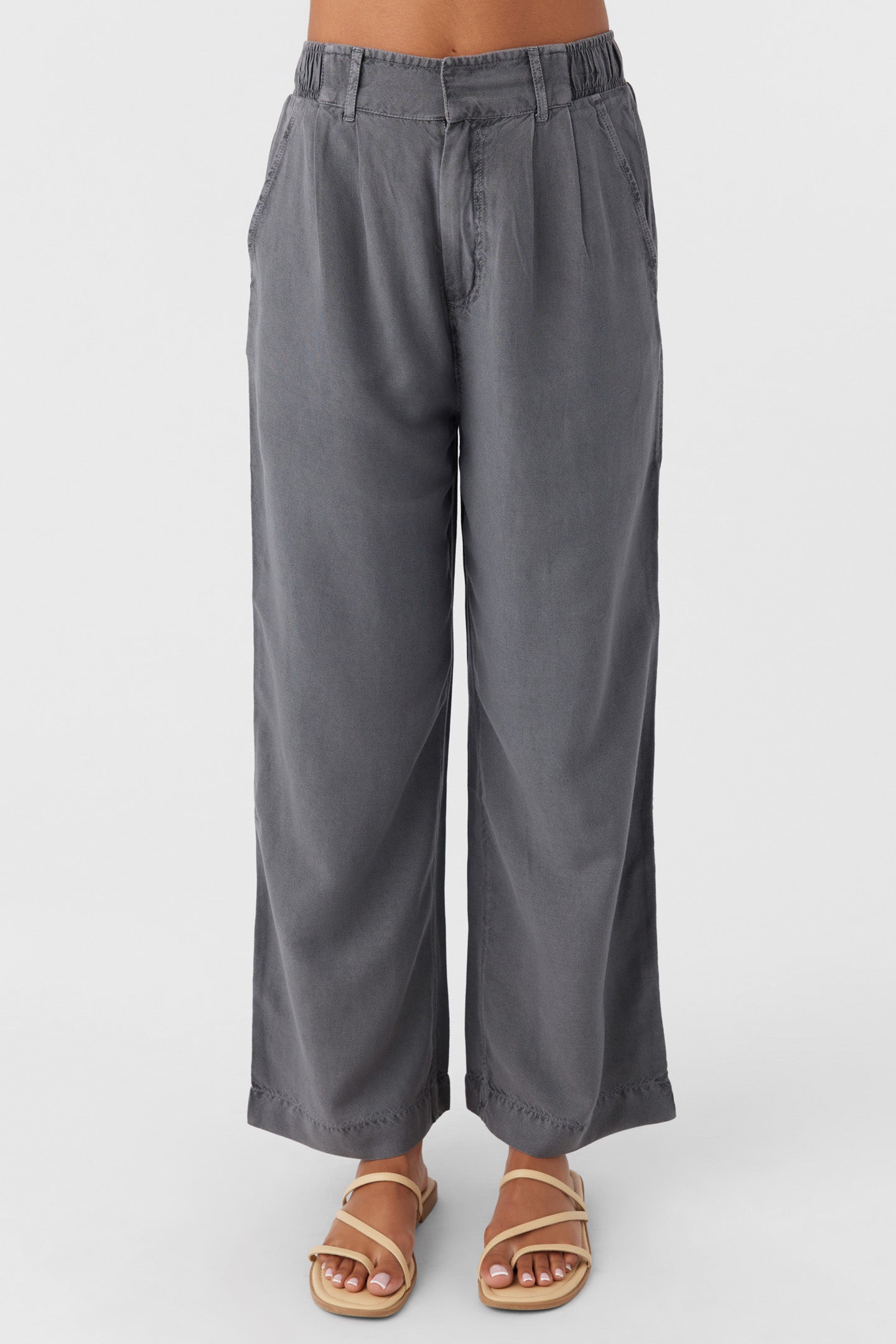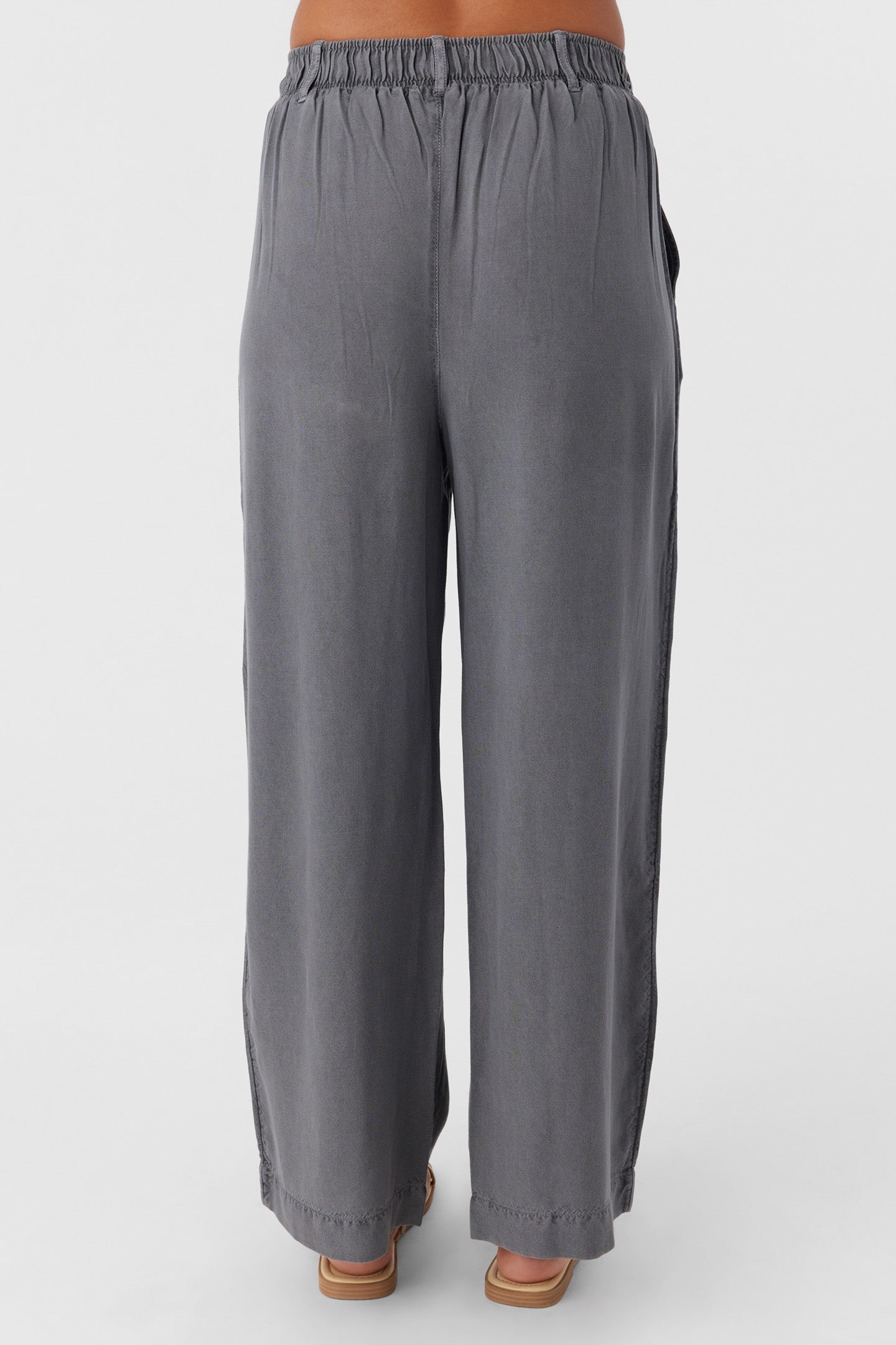 Cute and casual lightweight woven pant that has a comfort elastic waist and solid color wash.