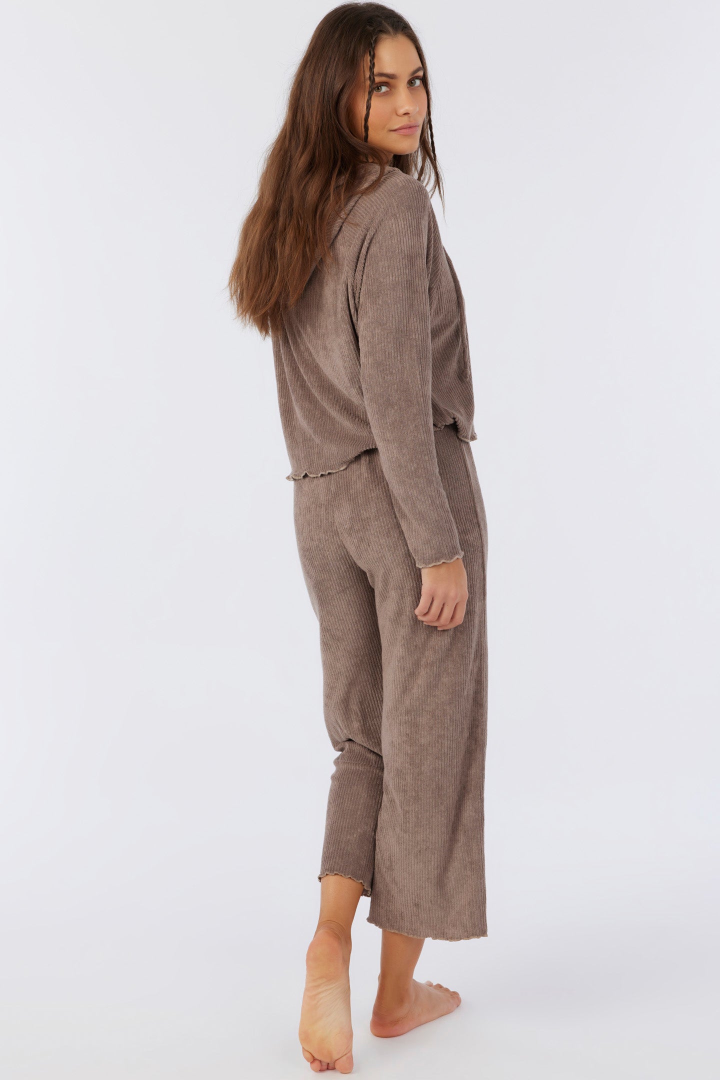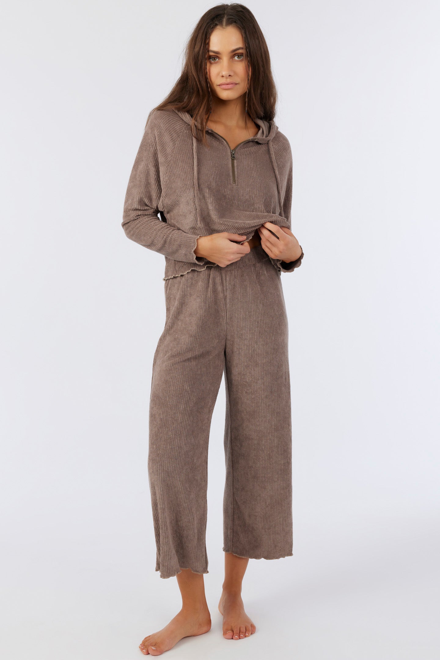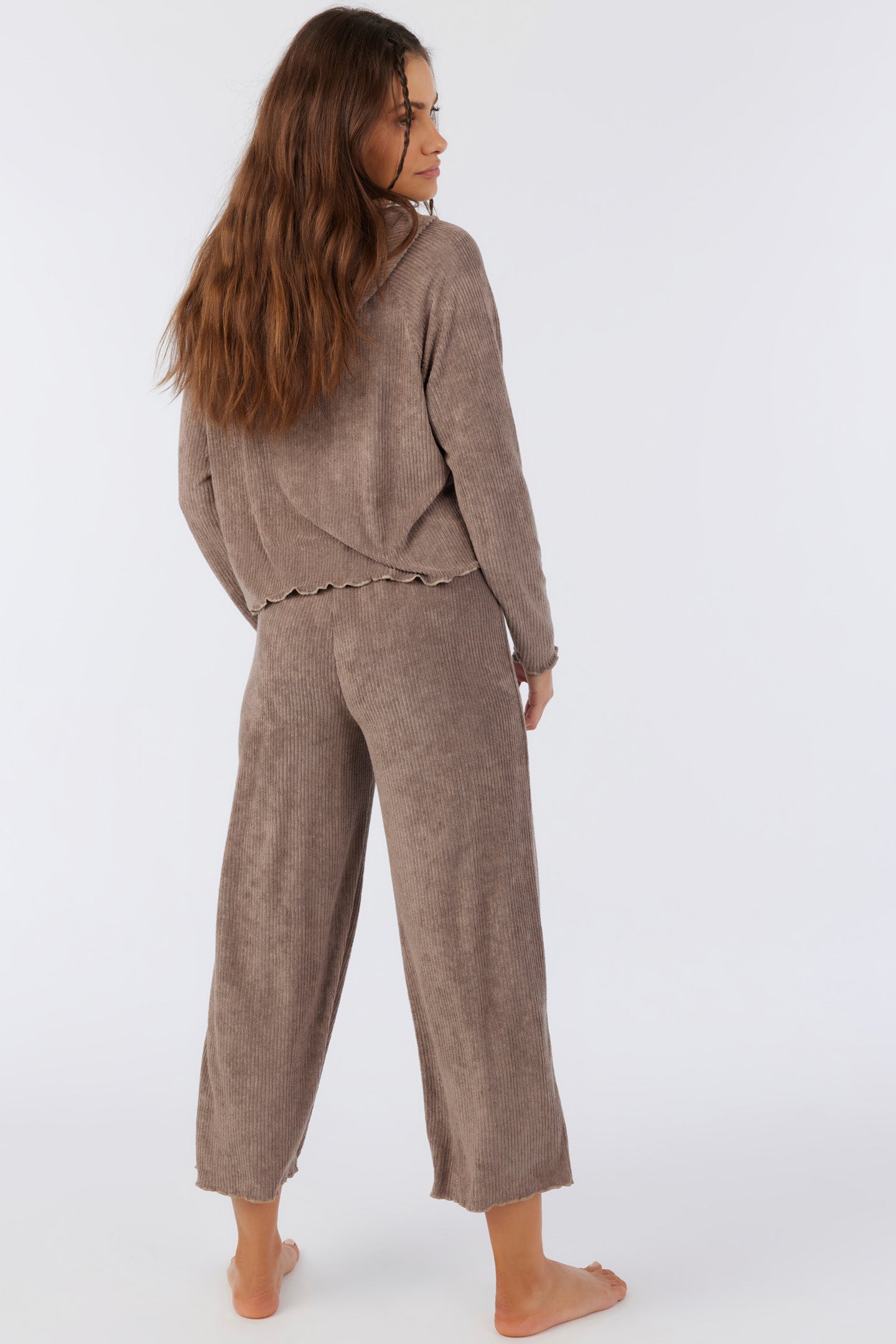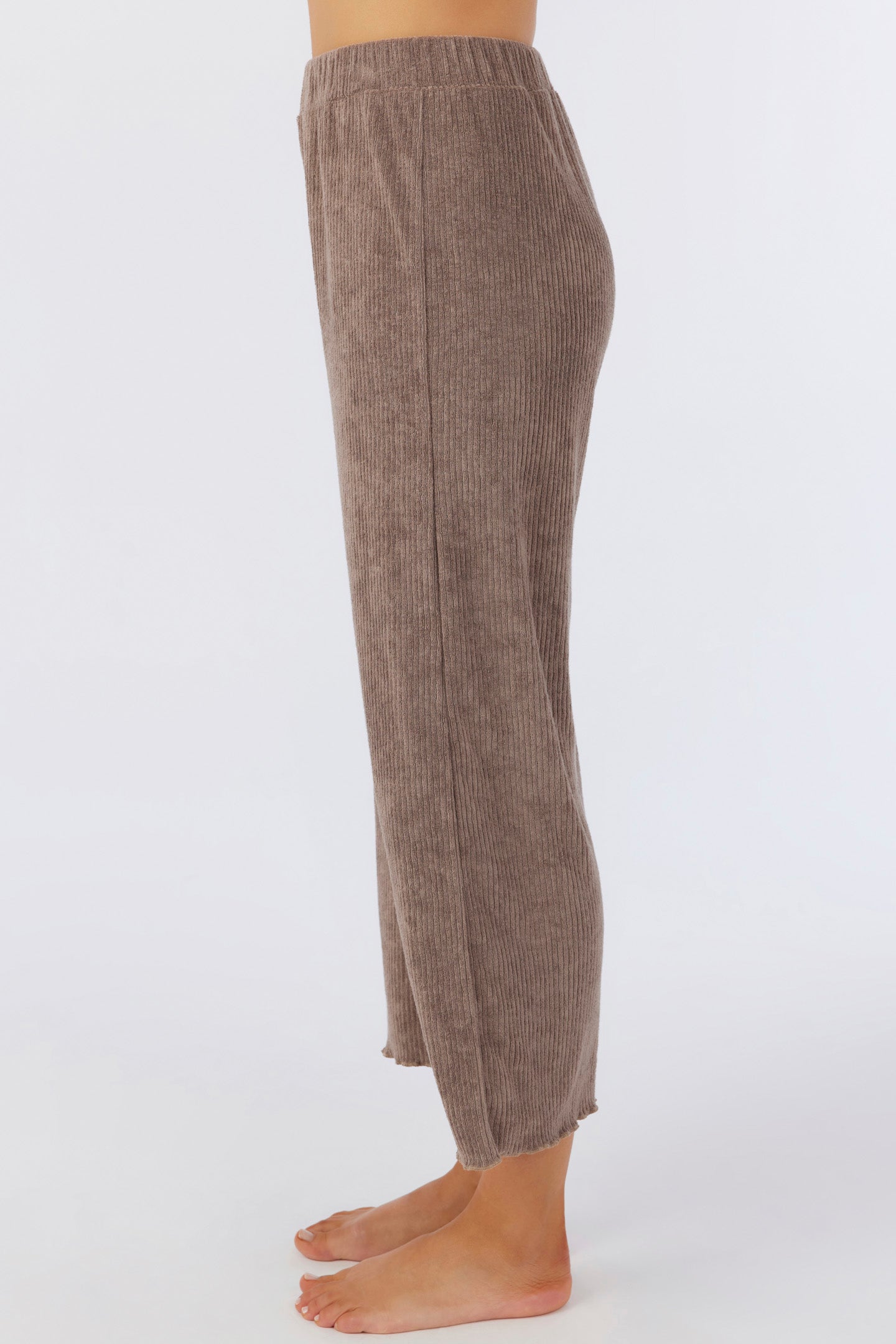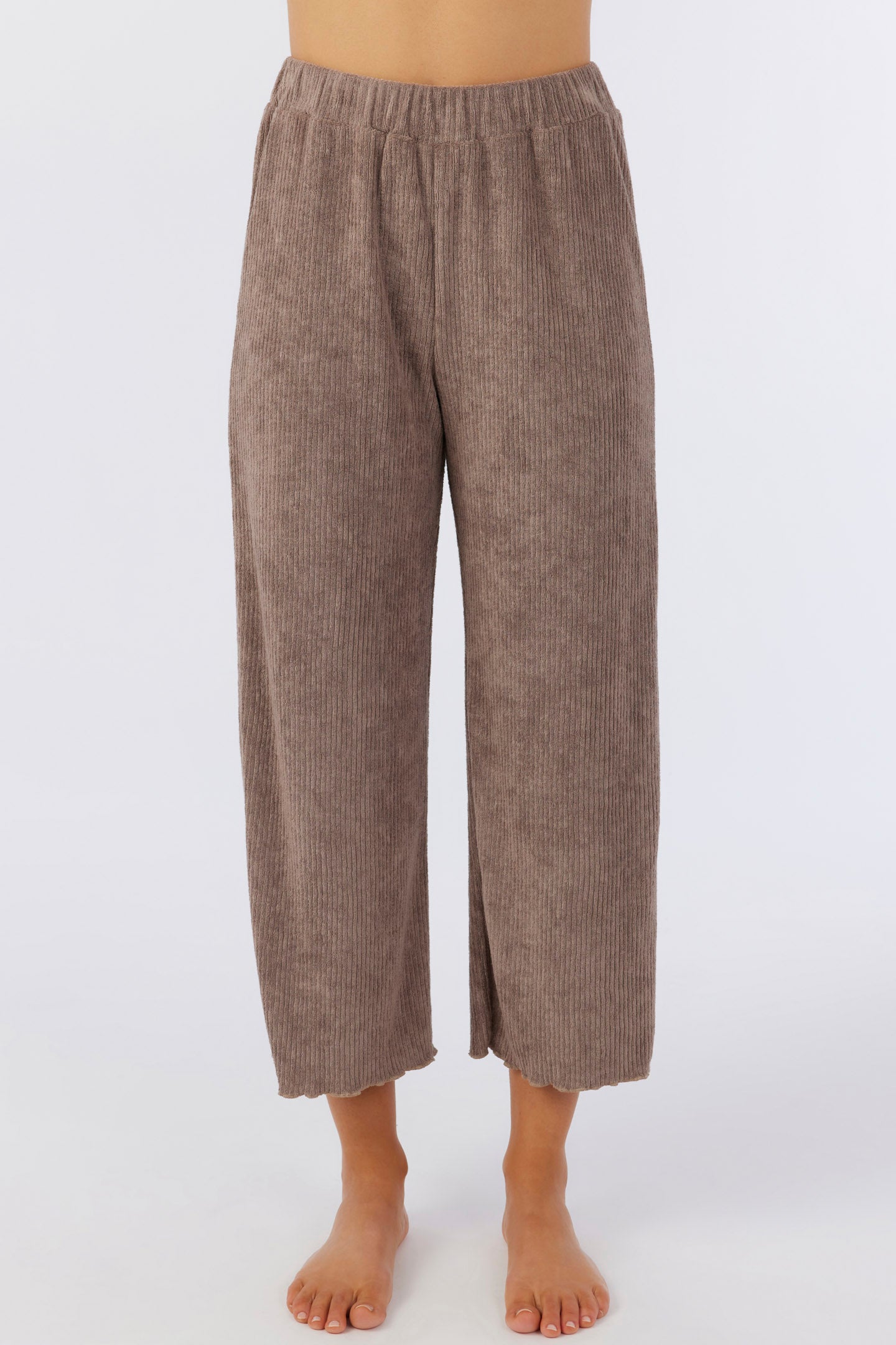 Cute and cozy knit pants that have a terry rib design, wide leg fit and solid color wash.