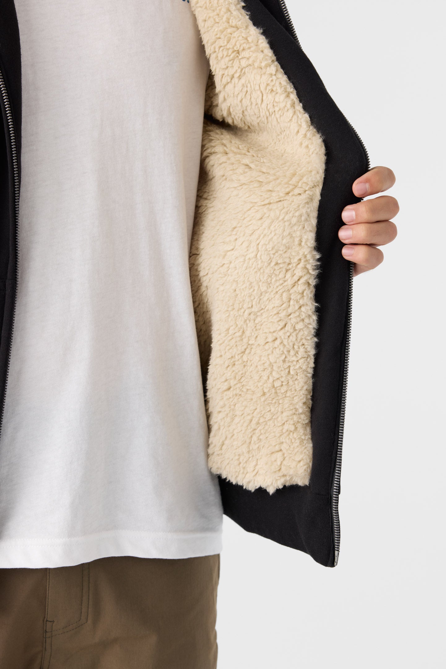 - High pile lined body and taffeta lined sleeves
