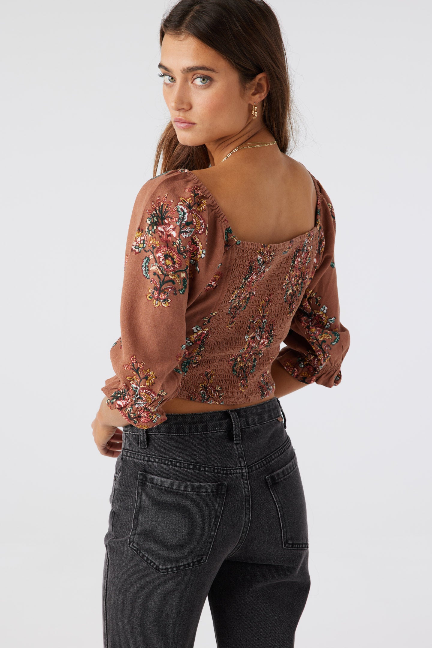 - Smocked back panel