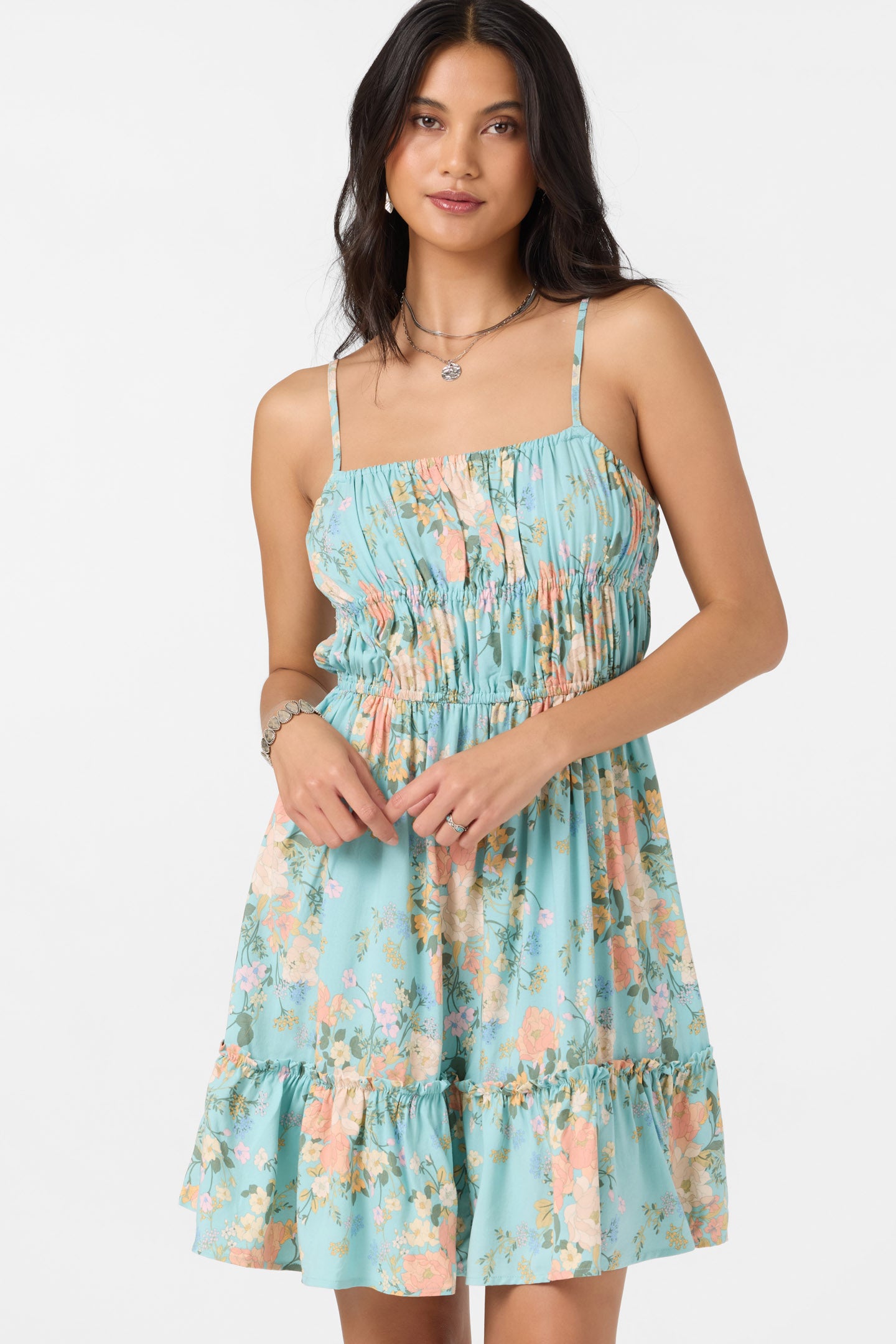 - Ruffle tier at hem
