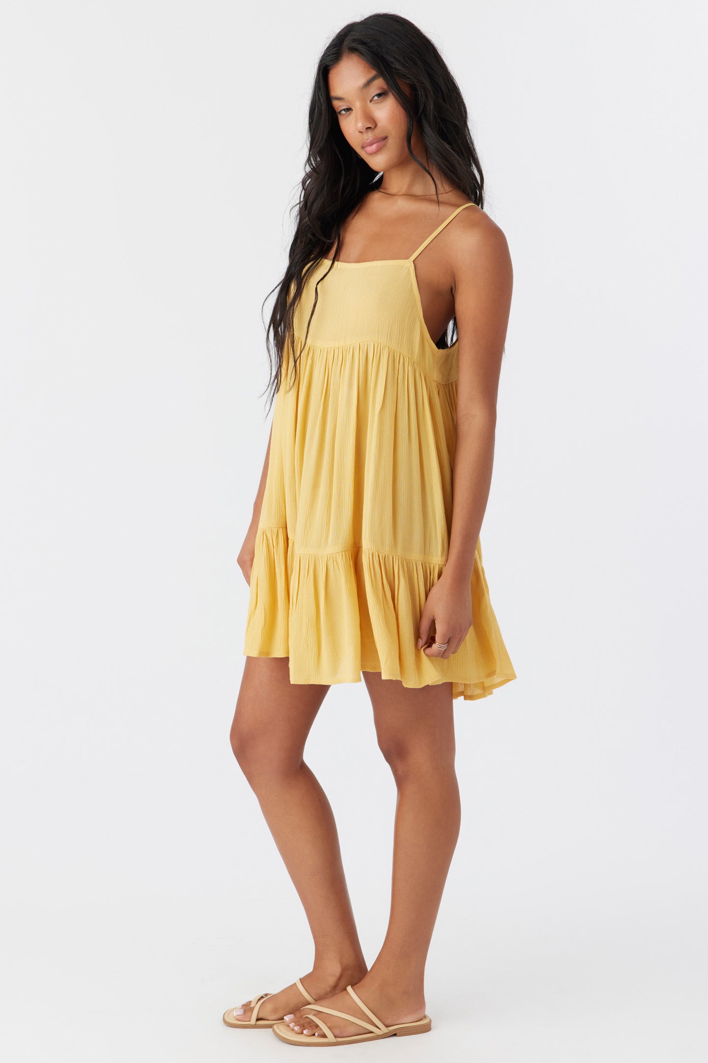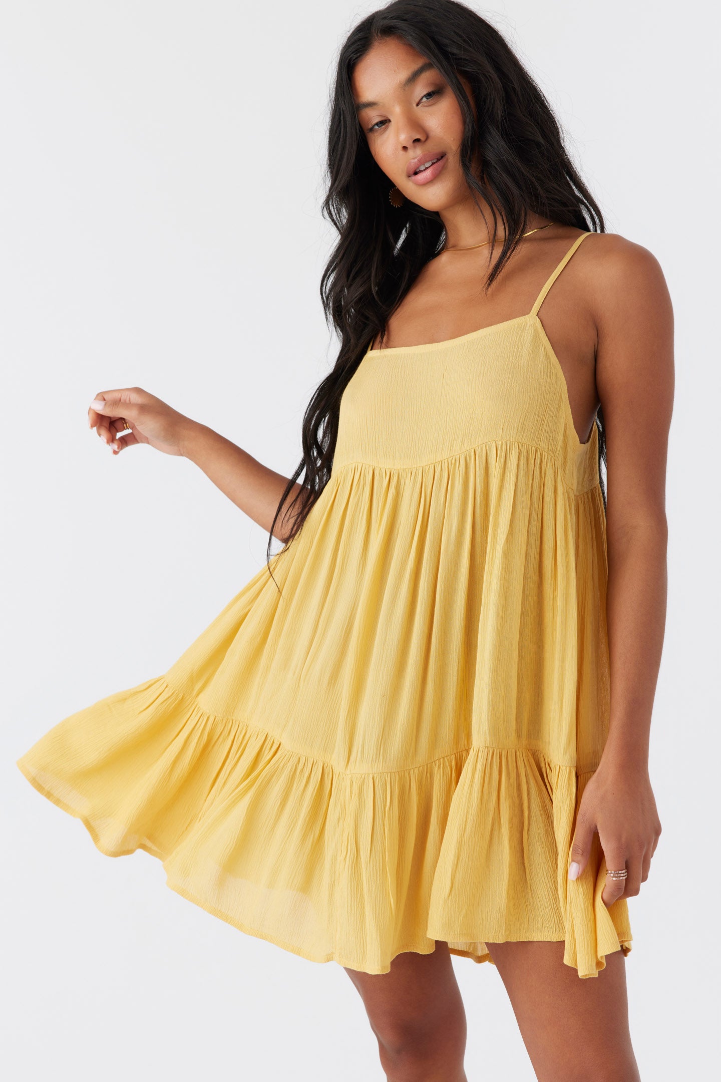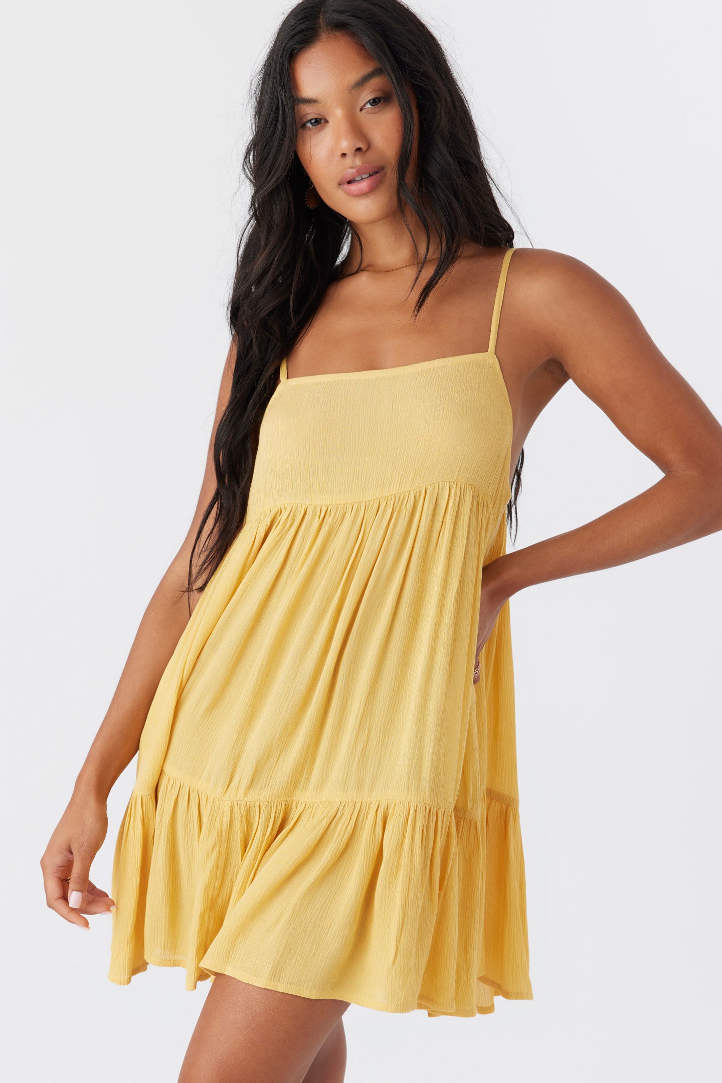 Complete your beach look with this flowy cover-up dress. It has a mini length fit and tiered detail.