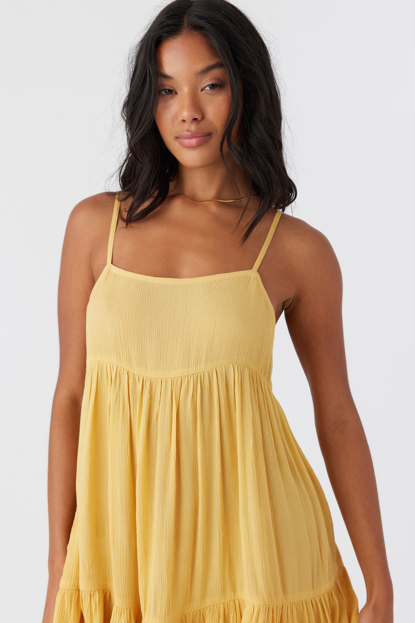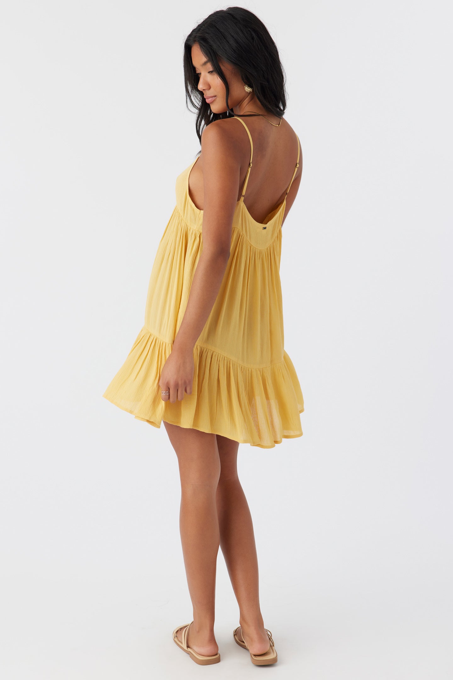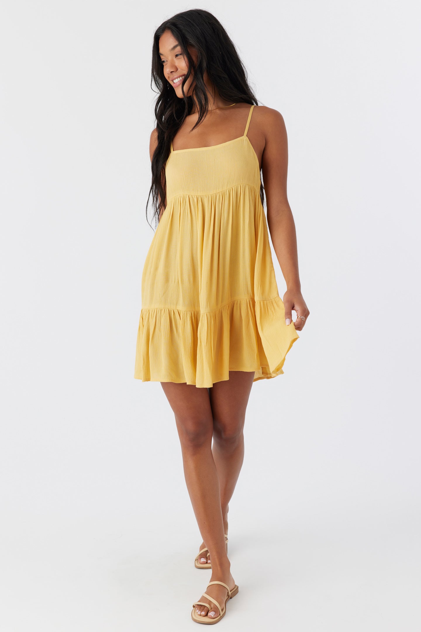 Complete your beach look with this flowy cover-up dress. It has a mini length fit and tiered detail.