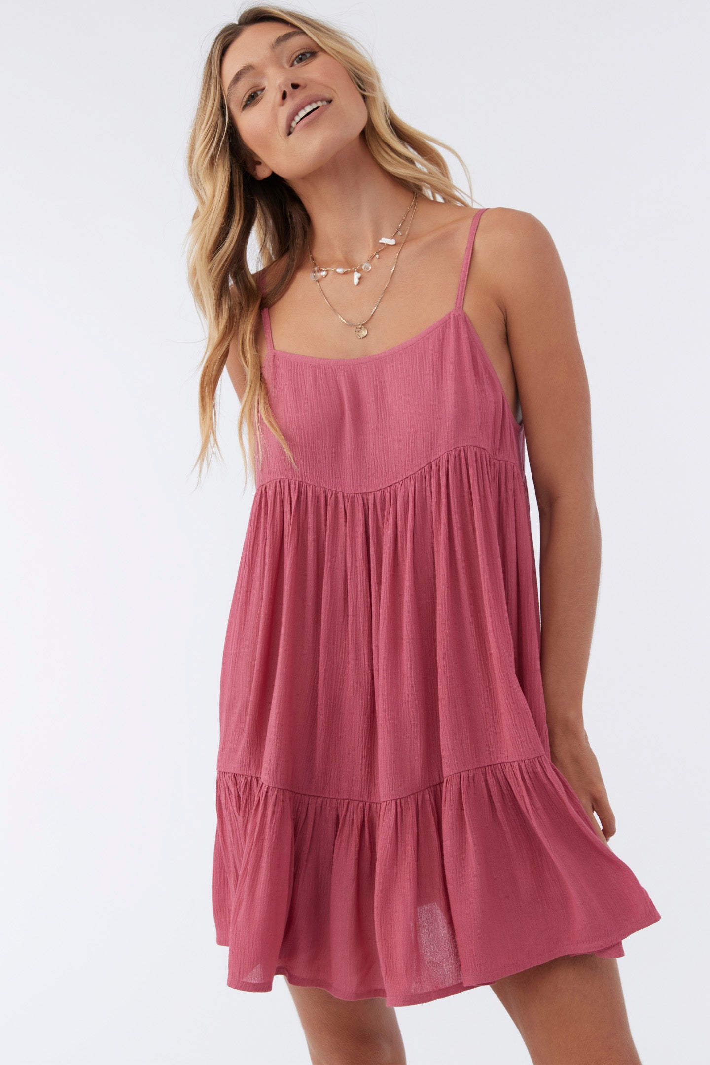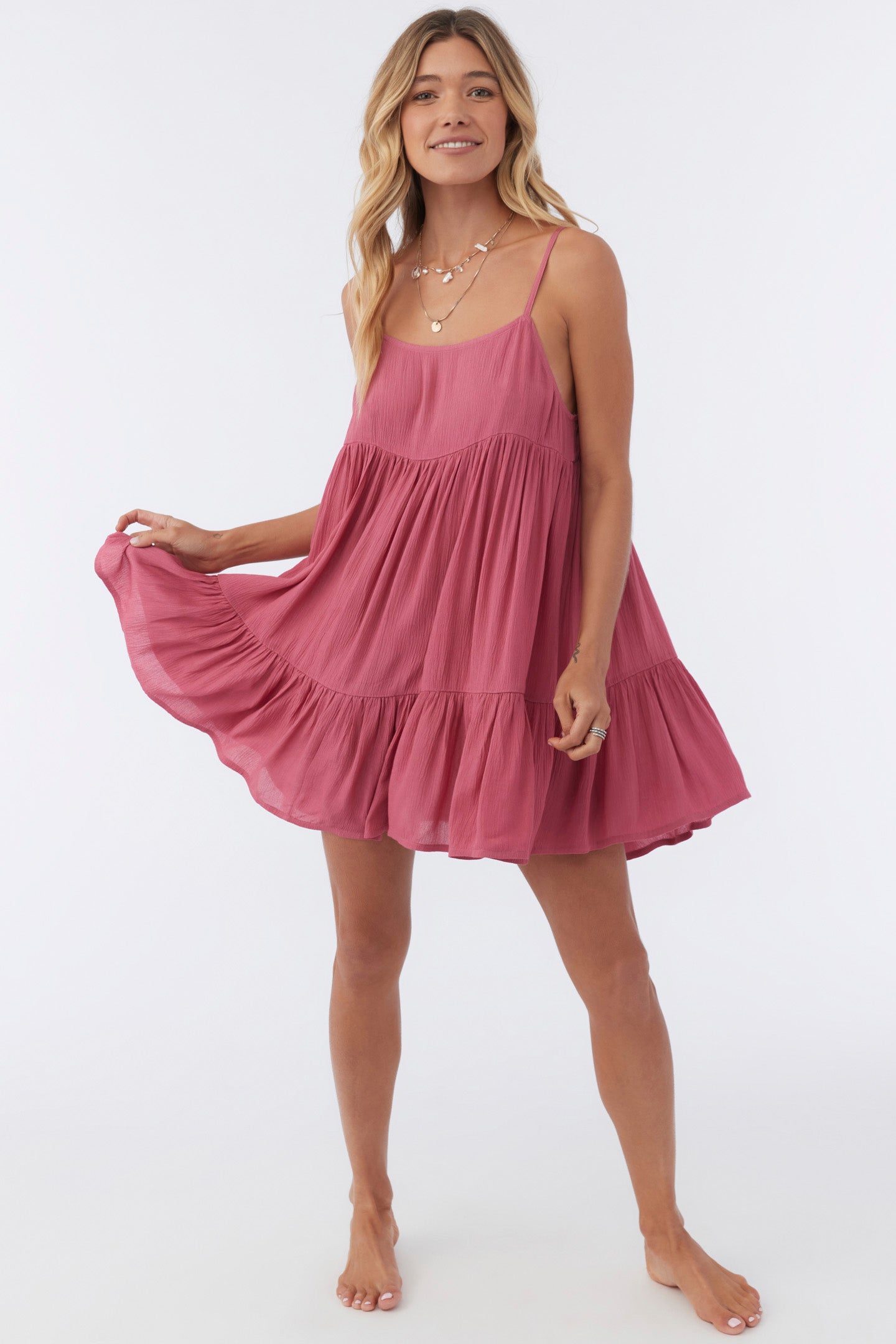 Complete your beach look with this flowy cover-up dress. It has a mini length fit and tiered detail.