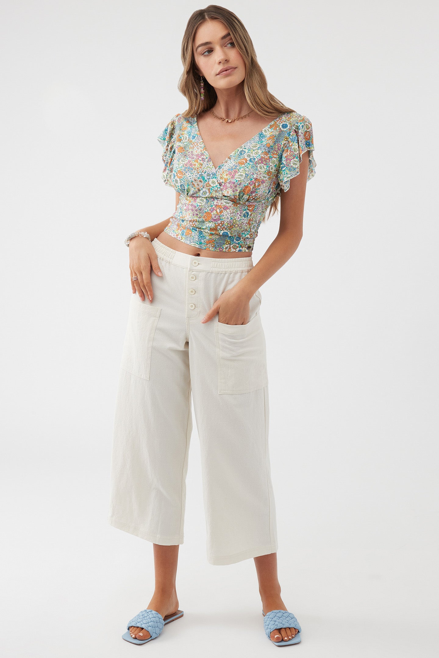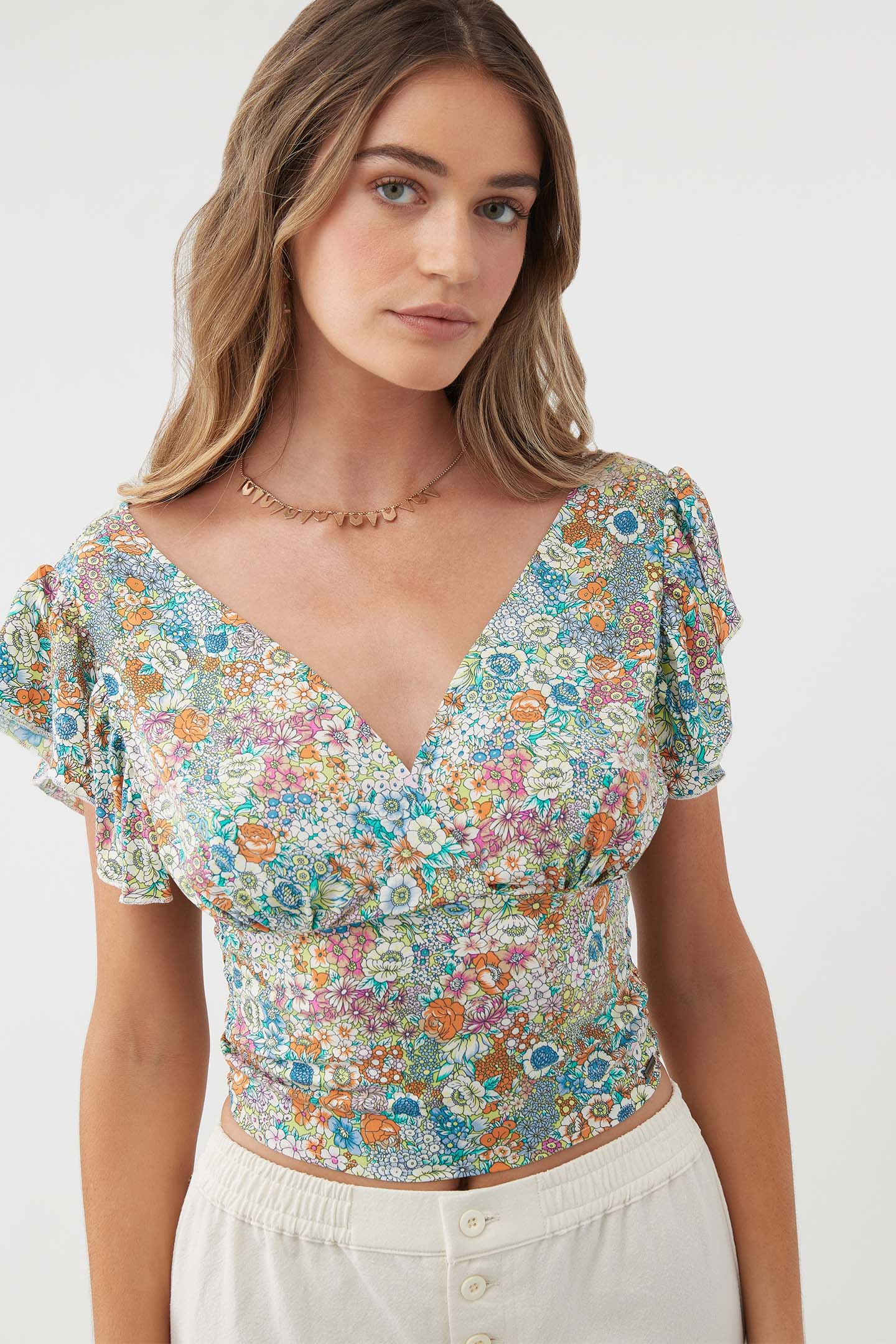 - O'Neill Women's woven flutter sleeve top