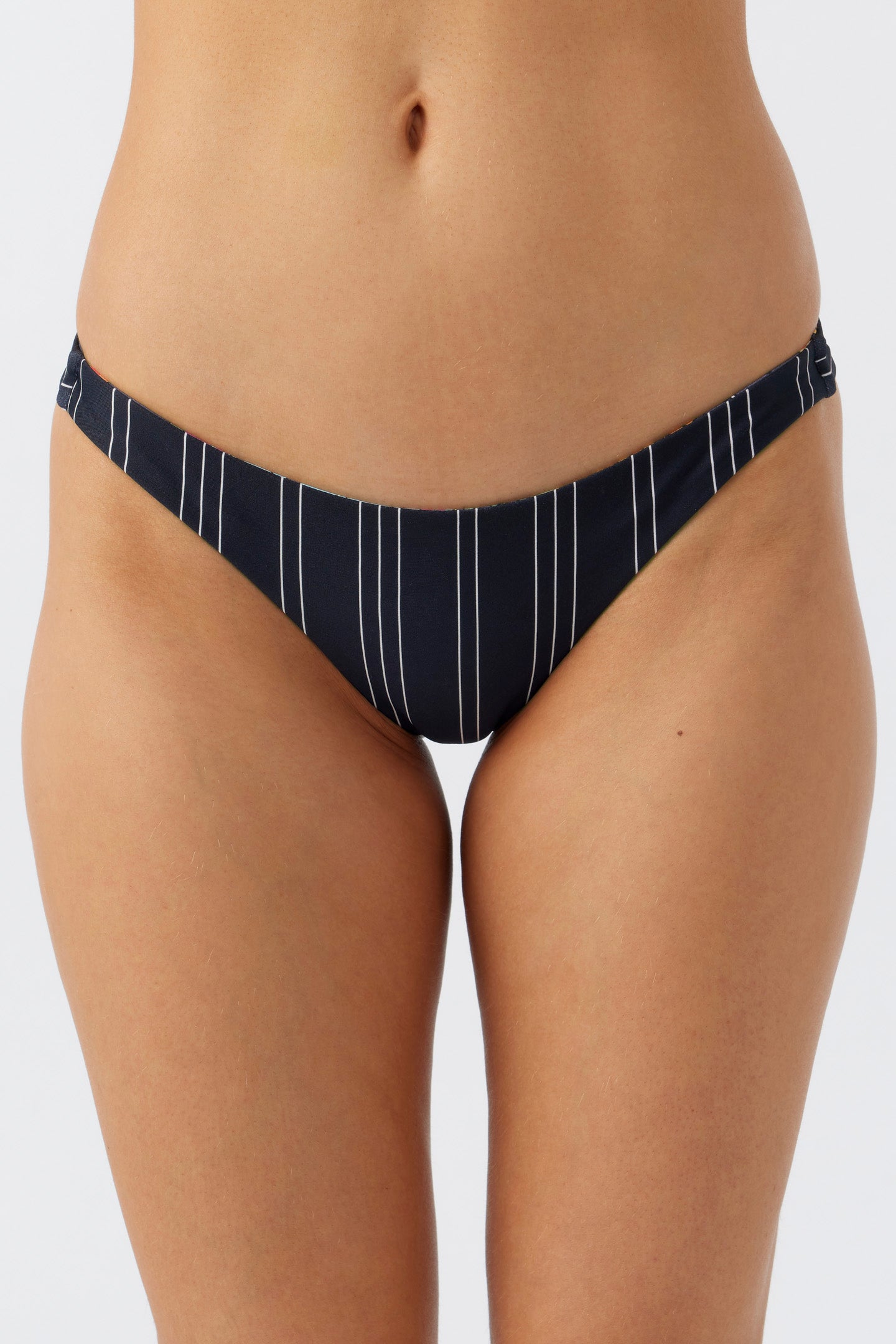 The beach is calling. This is a single strap bikini bottom that has a skimpy coverage fit and allover print. Wear two ways with the reversible design.
