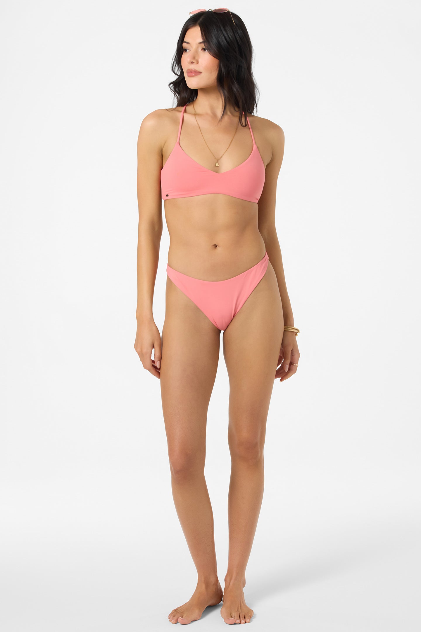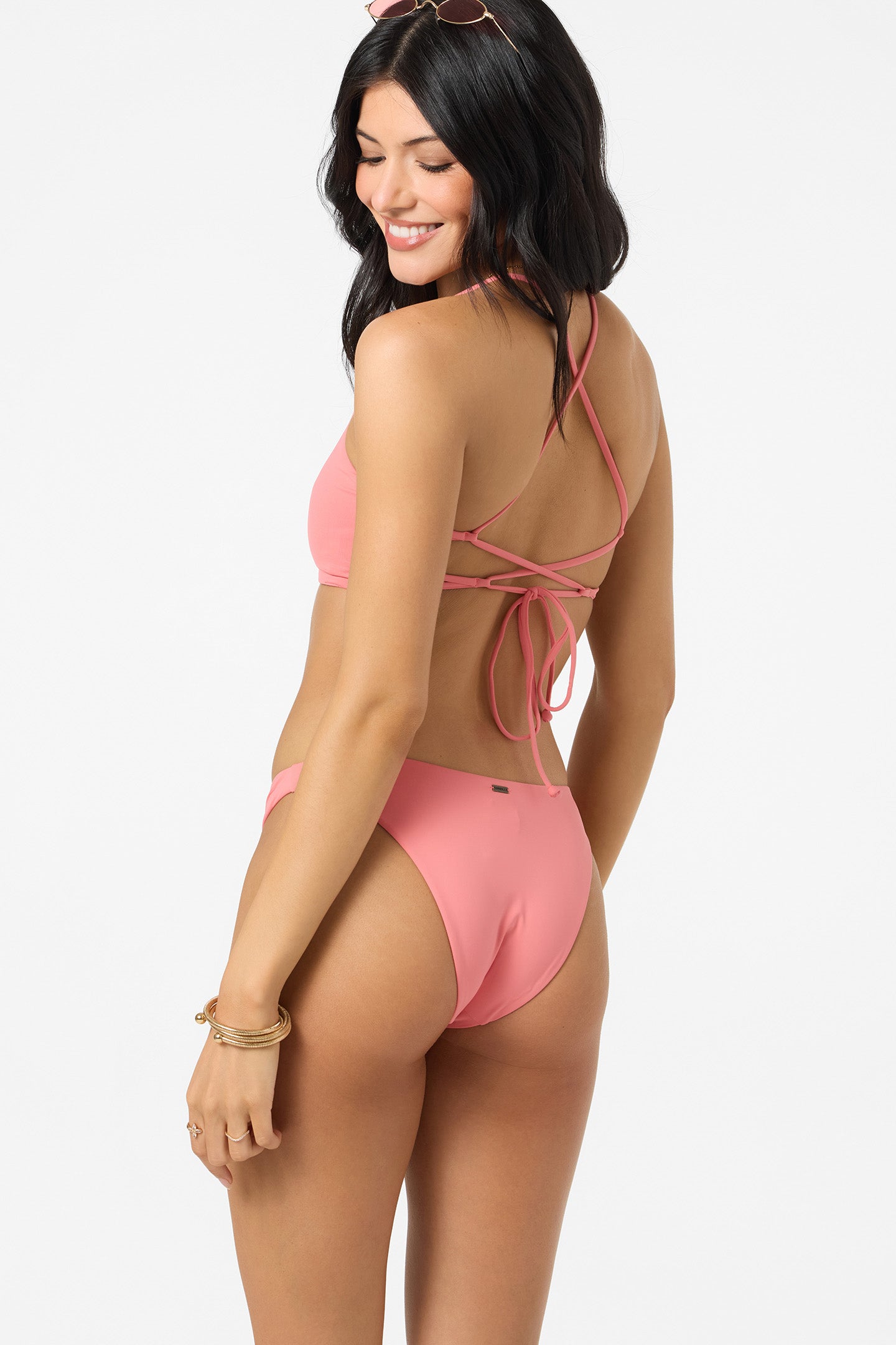 Perfect for any day by the water, this retro-styled bikini bottom has a classic thin strap design, high leg fit and solid print.