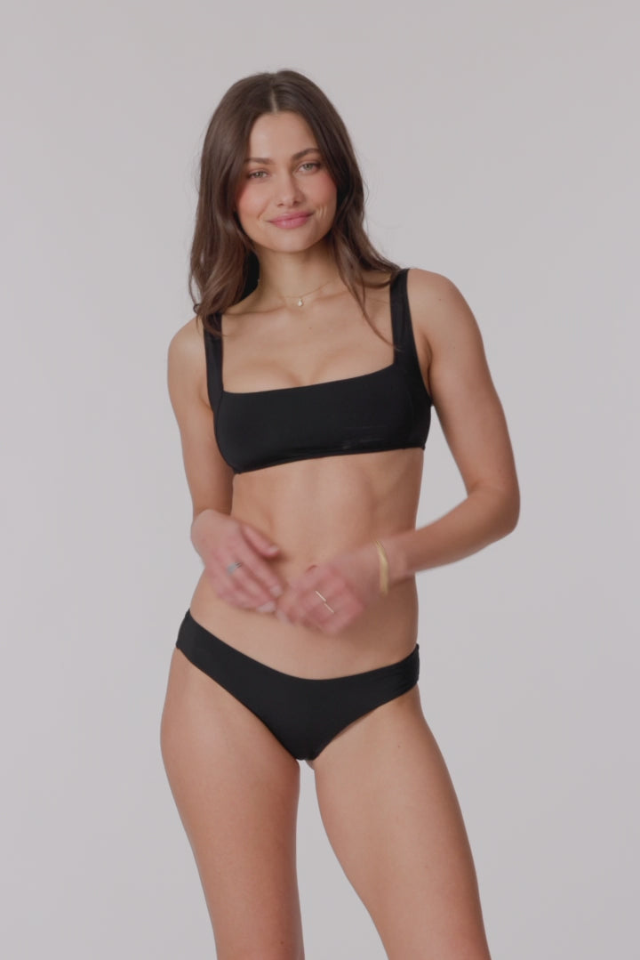 Head to the beach and soak up some sun in this solid square neck bralette bikini top.