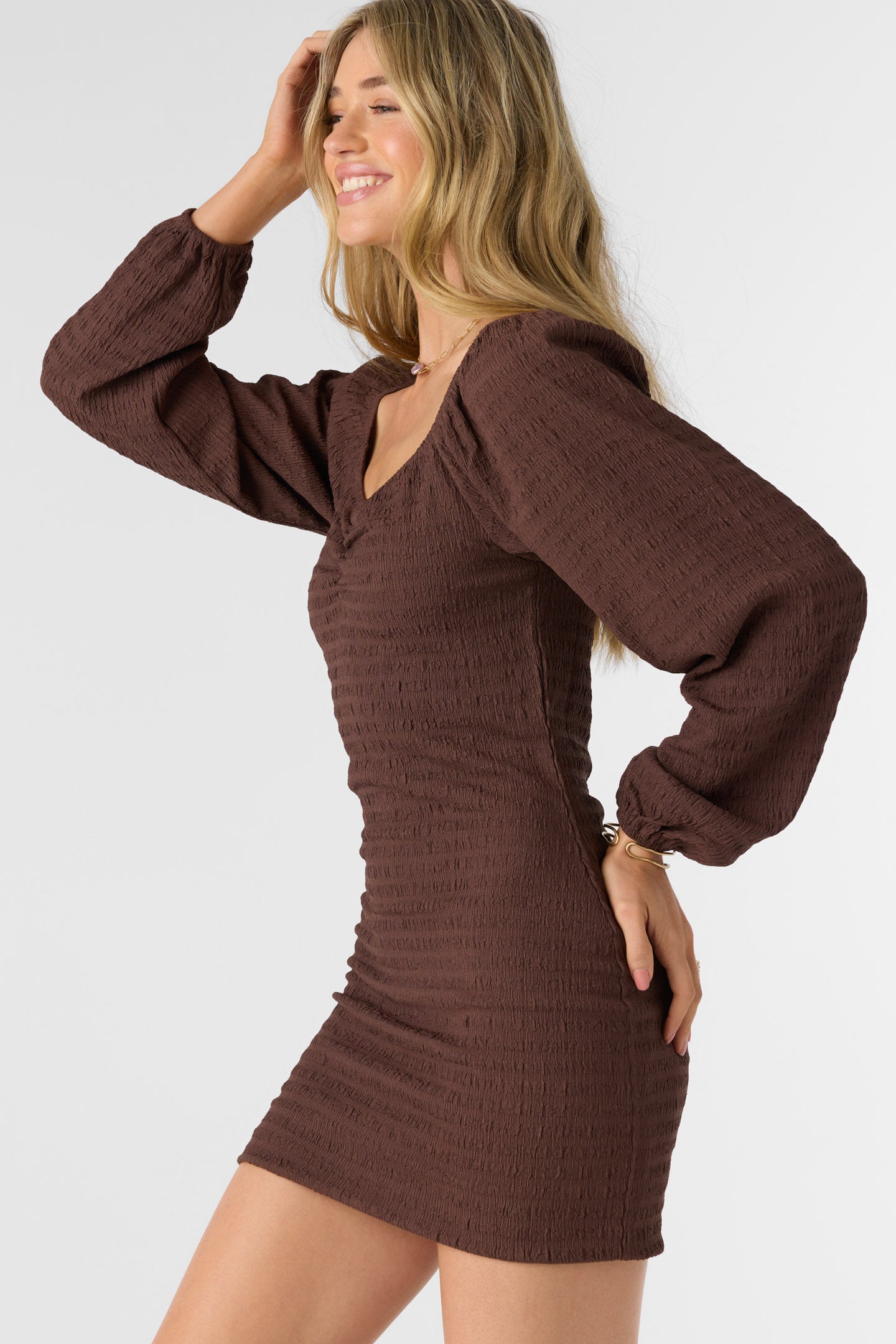 Tegan Smocked Knit Long Sleeve Mini Dress