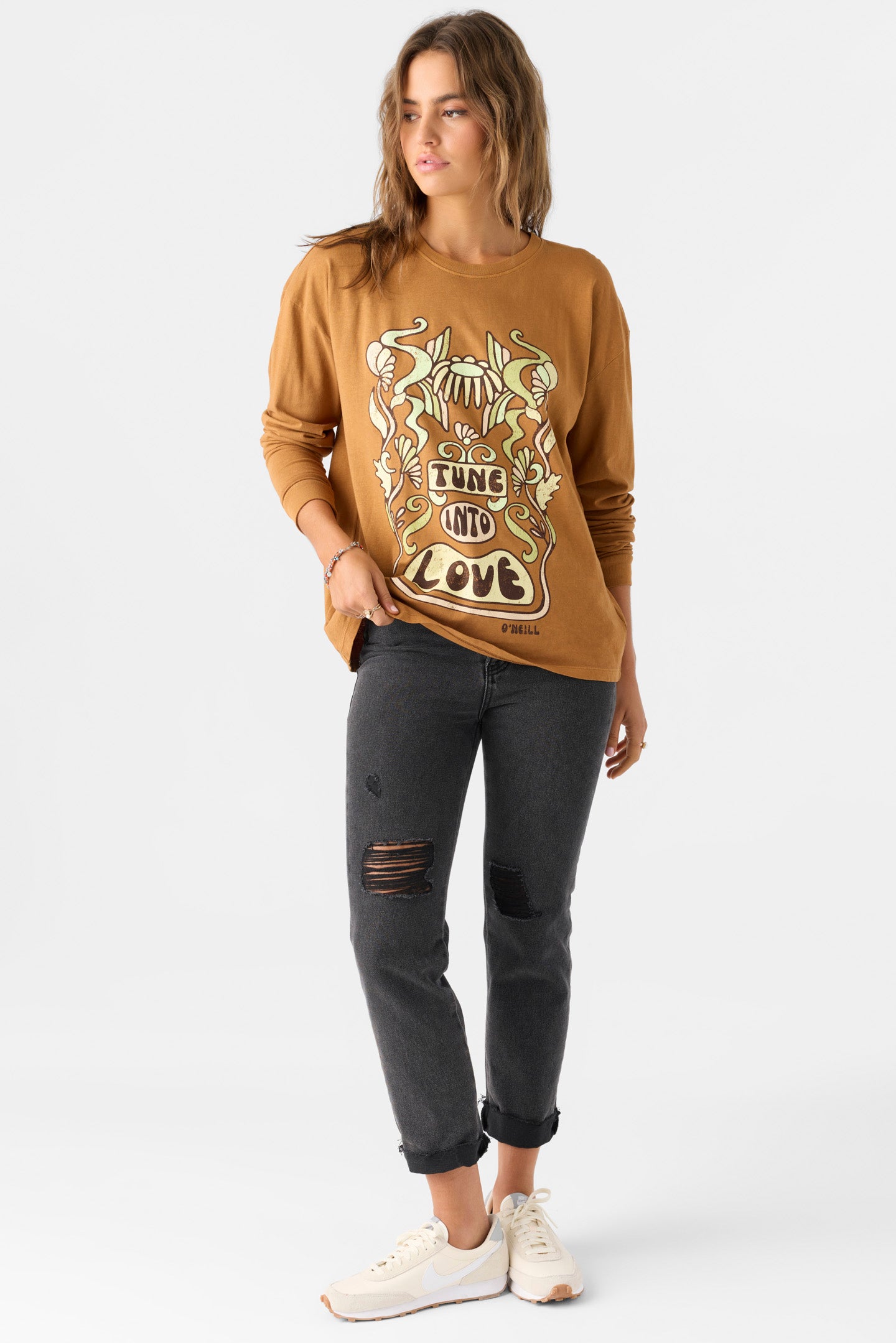 Effortlessly cool long sleeve tee that has a relaxed fit, soft cotton feel and high quality screen print.