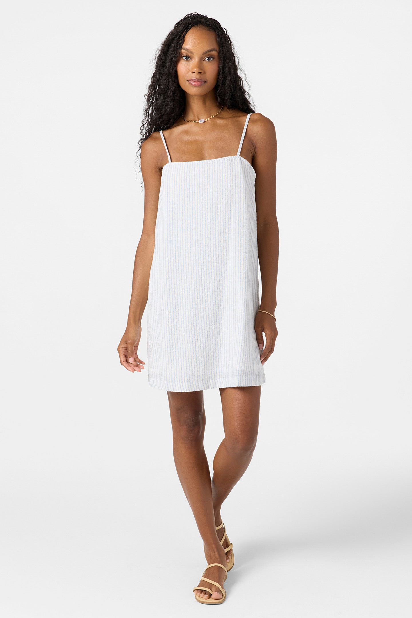 Unleash your inner sun-seeker in our striped mini dress, a breezy little number that's all about easy living. With adjustable straps and a keyhole back, it's your new favorite sidekick for impromptu adventures and lazy Sunday brunches alike.